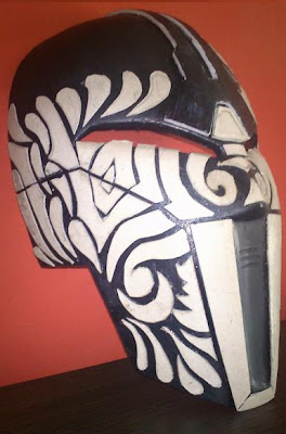Maskę robię z HIPSu 3mm, jednak do doskonałości jej jeszcze wiele brakuje, aktualnie przerabiam kopyto by maska bardziej przypominała te z gry.