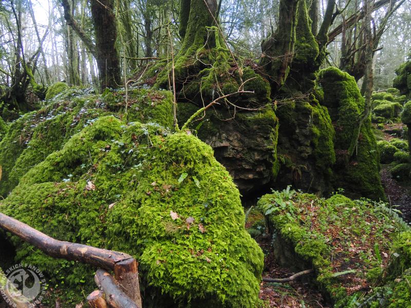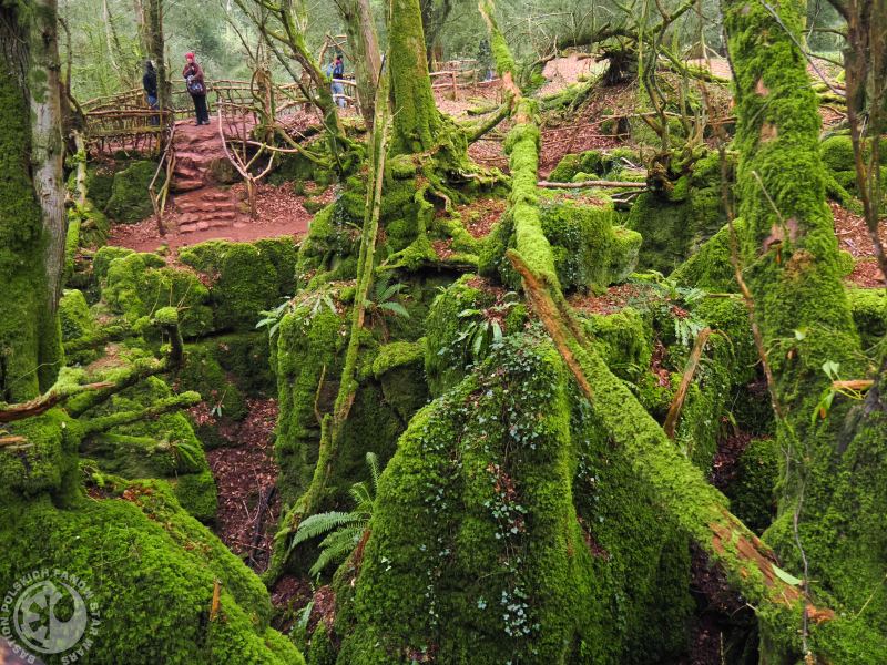 Jedną z nich jest Puzzlewood, znajdująca się praktycznie na samej granicy Anglii i Walii. Więc można to dotrzeć zarówno z Cardiff jak i z Bristolu (najwygodniej samochodem). Puzzlewood to cześć starolasu – Forest of Dean. Ale jest to część prywatna i zamknięta, więc wejście tutaj wiąże się z koniecznością kupienia biletu i chodzenia po ścieżkach. Puzzlewood jednak to nie jest zwykły las, ale obszar skał porośniętych mchem i oczywiście drzewami, co tworzy niesamowite labirynty skalne. Oczywiście Puzzlewood można oglądać od wiosny do jesieni, zimą, gdy jest tu mokro i brzydko ludzi nie wpuszczają. Na zwiedzanie warto mieć co najmniej 2-3 godziny, by móc pochodzić po tych leśnych i skalnych labiryntach. Wcześniej przed wejściem jest okazja zobaczyć agroturystykę, zwłaszcza jakby ktoś chciał przyjechać z dzieckiem.