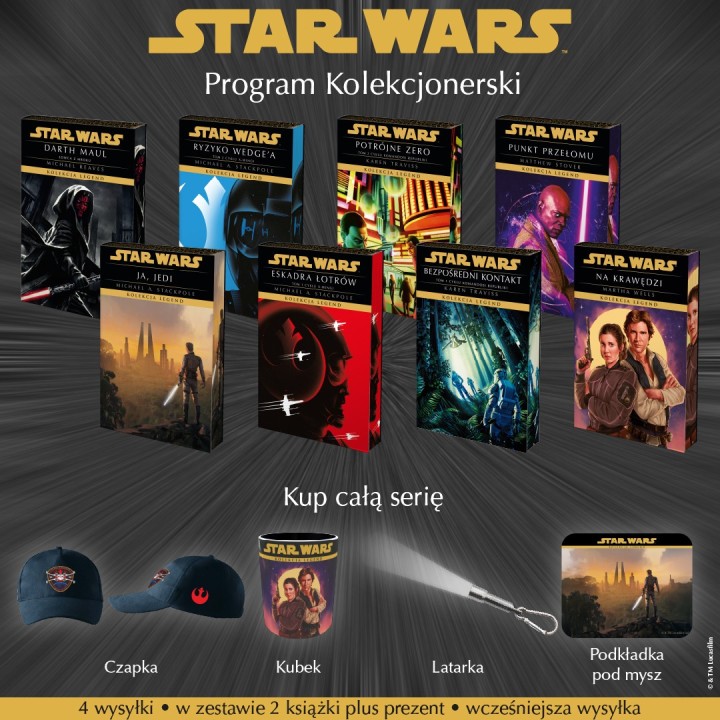 - Dwa pakiety do wyboru, 7 książkowy (630,00 PLN) dla tych co nabyli już Ja, Jedi w lutym, oraz pełny z 8 książkami (720,00 PLN)