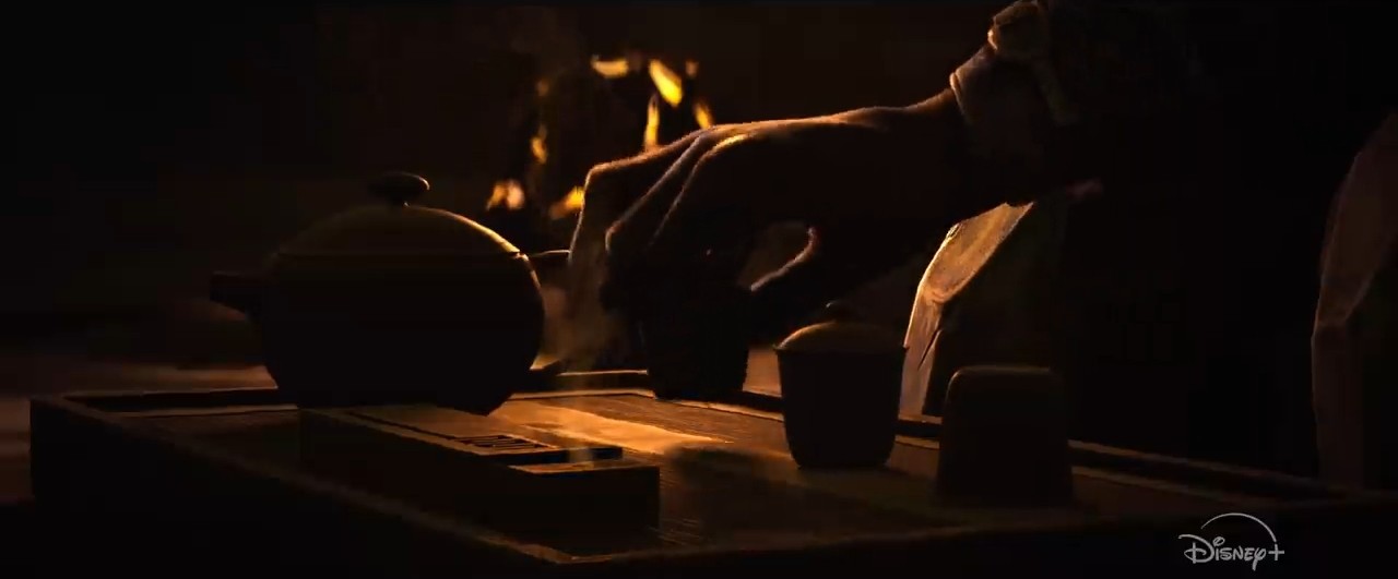 Maul przygotowuje herbatę (lub inny napój) na „japońską” modłę - wyżej wzmiankowany artykuł na Oficjalnej wspomina o tym, że twórcy wykorzystali tutaj manierę Sama Witwera, który sam brał udział w takiej ceremonii w Kraju Kwitnącej Wiśni. Będzie to rzadka chwila wyciszenia i spokoju dla Zabraka, aczkolwiek należy zauważyć, że kamera powoli przesuwa się w stronę leżącego obok miecza, co może sugerować zawoalowaną groźbę. Oficjalna informuje też o tym, że herbatkę Maul wypije z Devon, a zatem pewnie tak będzie próbował ją przekonać do siebie. Ze zwiastuna z Celebration wiemy też, że dziewczyna zabierze mu broń.