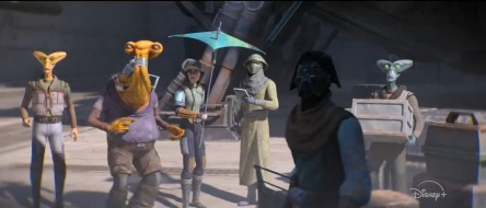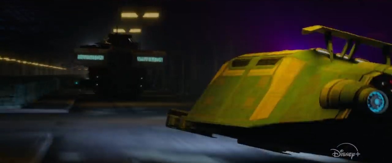 Ta scenka pojawia się na ułamek sekundy, ale więcej kontekstu może nam dać zwiastun z Celebration: w pojeździe jadącym z przodu znajdują się Mandalorianie, którzy będą prowadzić mocny ostrzał żółtych pojazdów, które zapewne przewożą coś cennego.